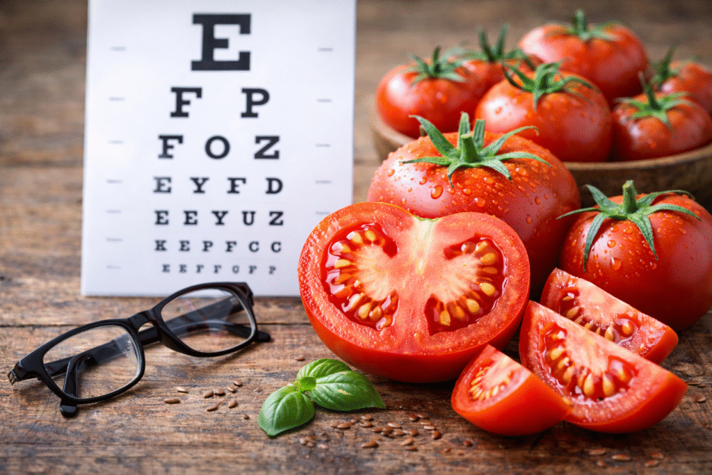 La vitamina A es fundamental para ver en condiciones de poca luz. El tomate aporta betacarotenos, que el cuerpo convierte en vitamina A, fortaleciendo la retina y mejorando la visión nocturna.