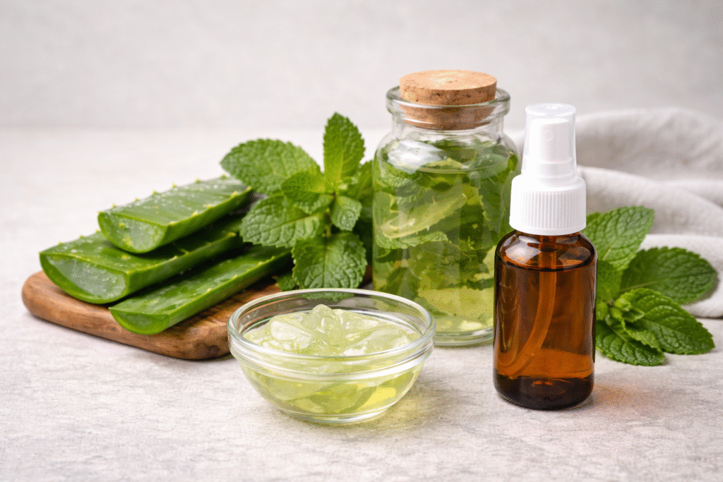 El aloe vera es apreciado por su textura hidratante, mientras que la menta aporta una sensación refrescante que resulta agradable durante la aplicación. beneficios del aloe vera